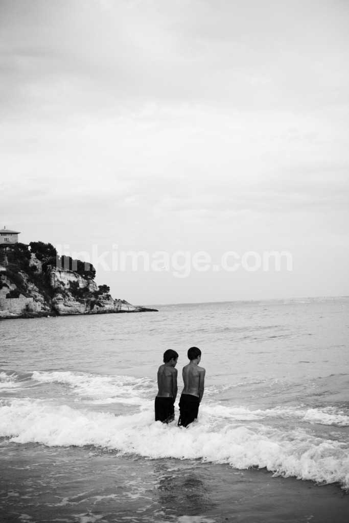 holiday, black and white, black, white, boys, portrait, swim, bath, water, sea, sand, shore