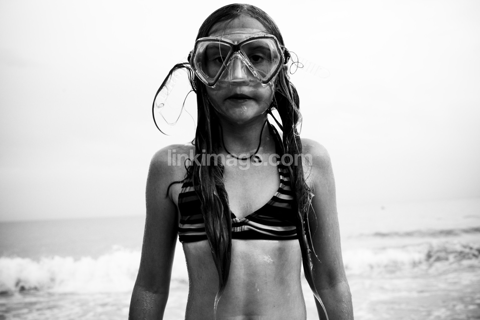 holiday, black and white, black, white, girl, portrait, swim, bath, water, sea, sand, shore