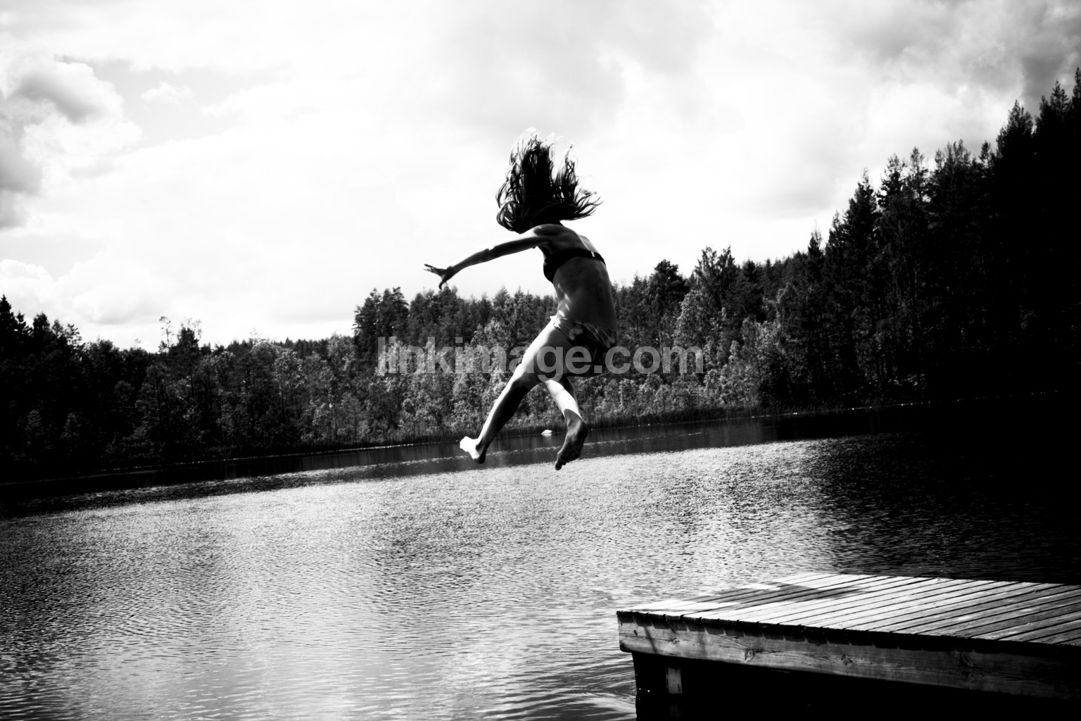 summer, swedish, country, rural, holiday, sun, black, white, black and white, girl, water, bridge, swim, bath, lake, sweden
