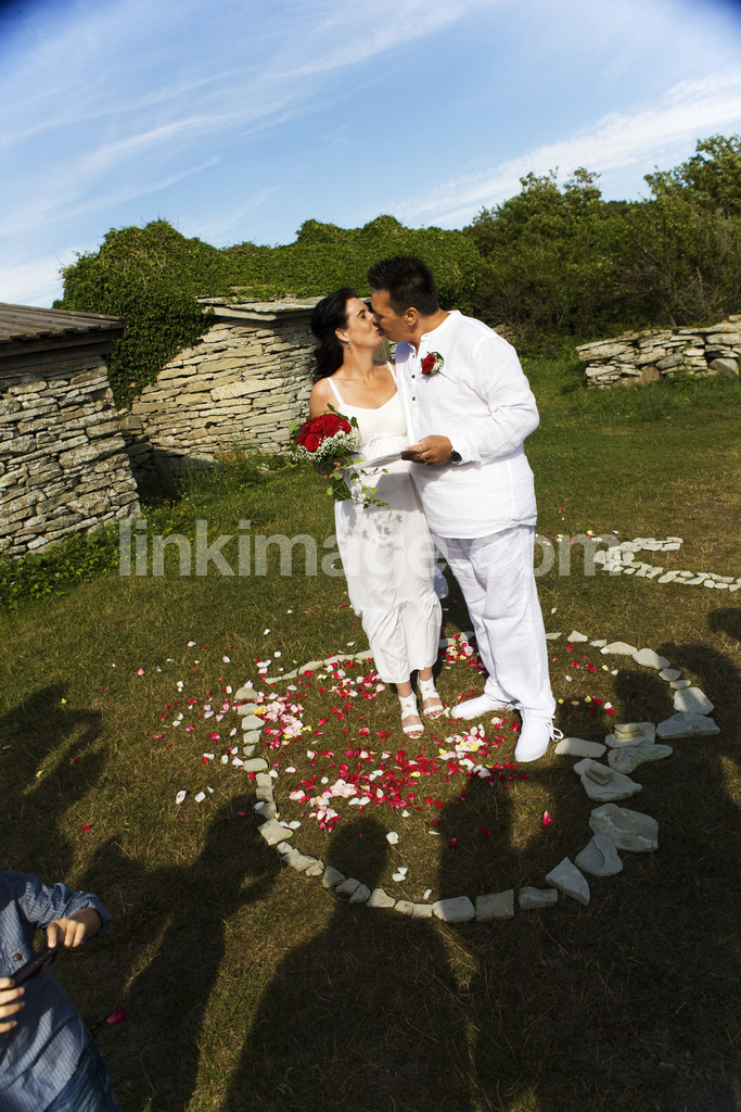 wedding, kiss, love, heart, shore, summer, gotland, couple, adults, flowers, roses