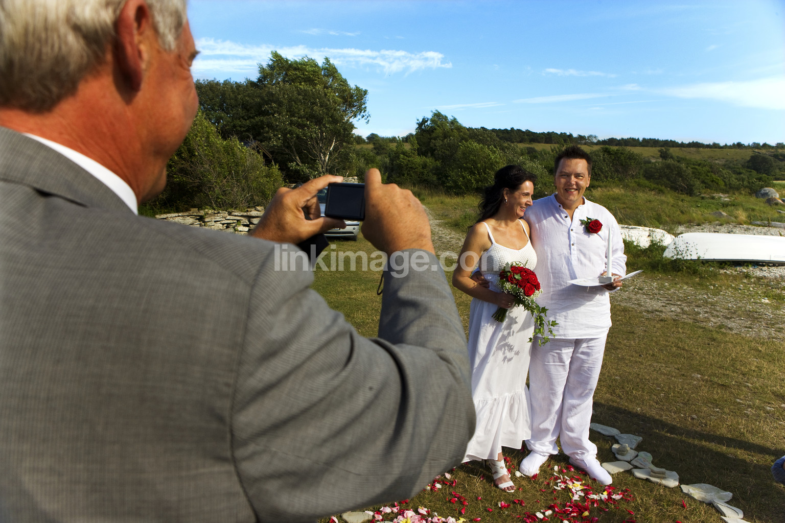 wedding, couple, love, summer, shore, nature, sea, ceremony, sun, white, flowers