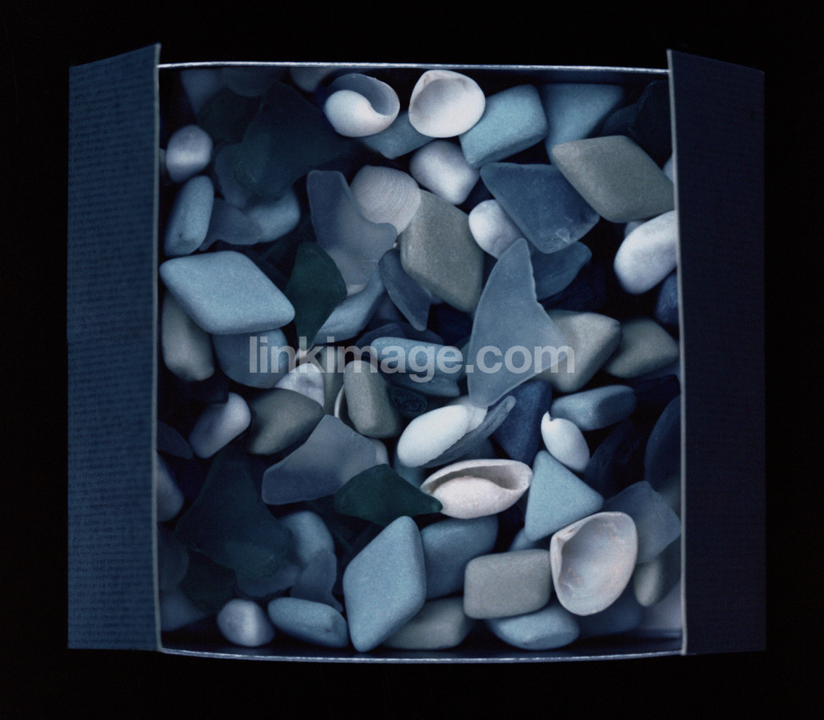 - stones, shells, glass pieces, glass, box, shore, nature, paper box