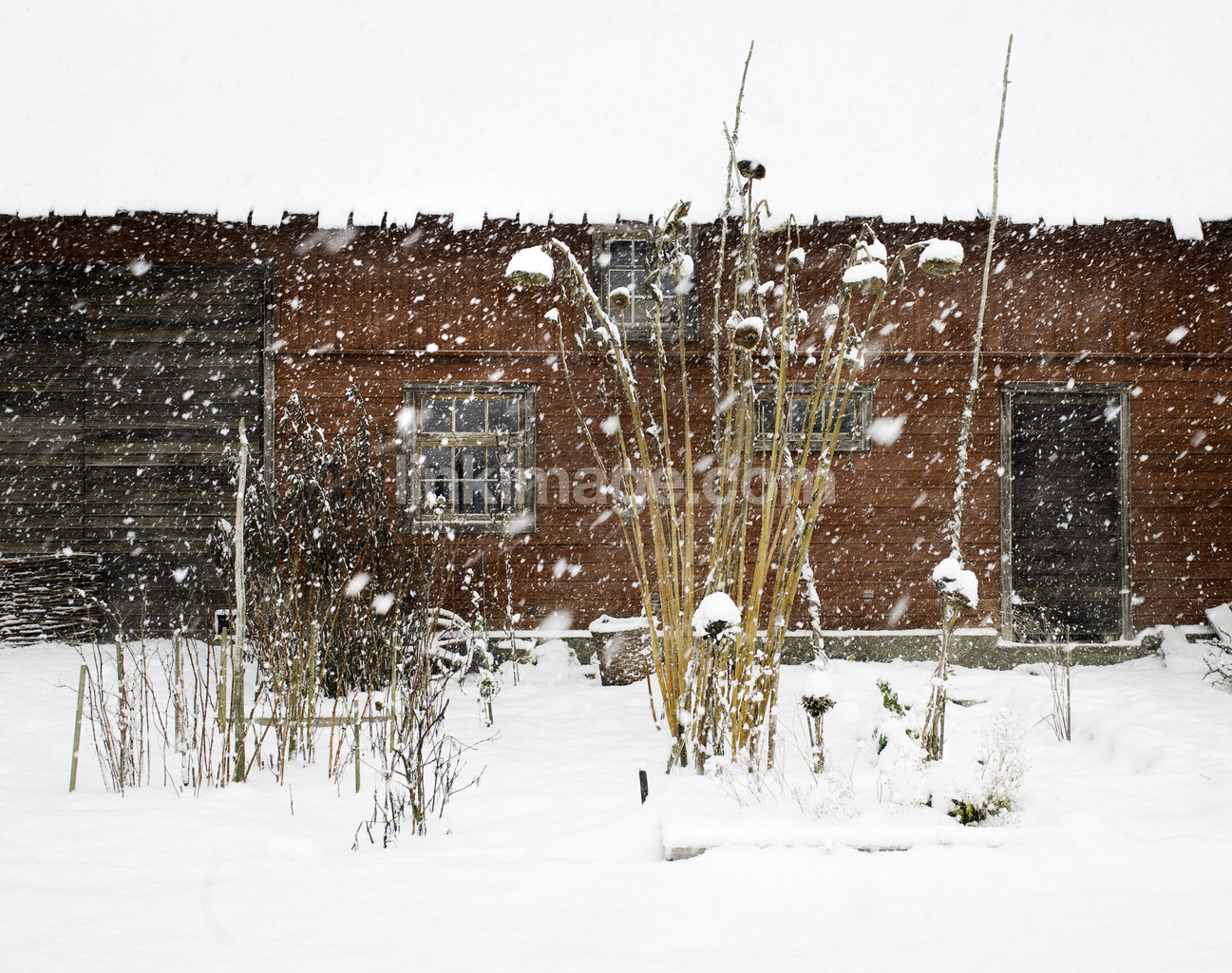 - winter, snow, plants, garden, culture, cold, frozen, barn, sunflowers