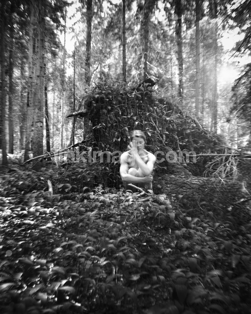 - uprooted tree, woman: nude, forest, plants, lily of the valley, tree