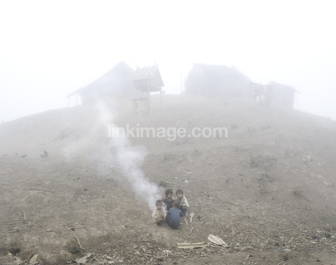 - children, track, broken, dirty, by, asia, trip, laos, spot, huts, fire, morning