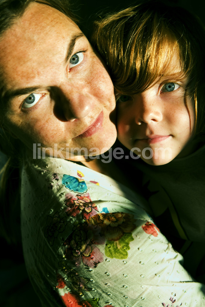 - mother, children, arms, hug, proximity, evening, summer, guy, portrait