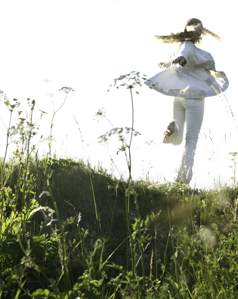 - meadow, summer, sun, flowers, fashion, joy, female, girl, dance, romance