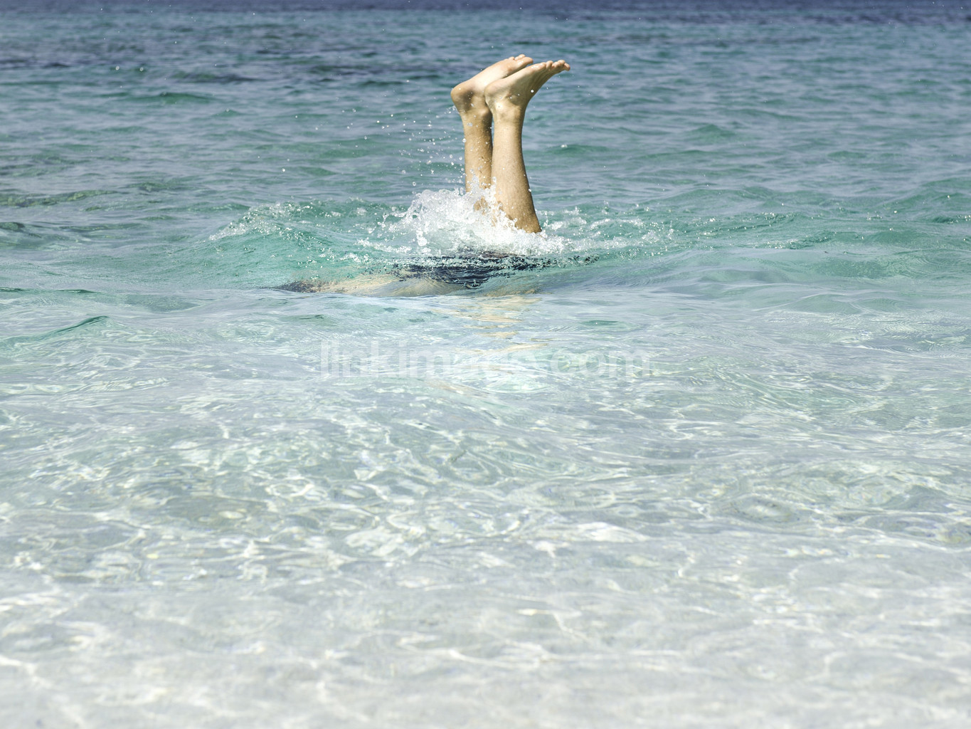 - Man diving in turquoise, crystal clear sea.