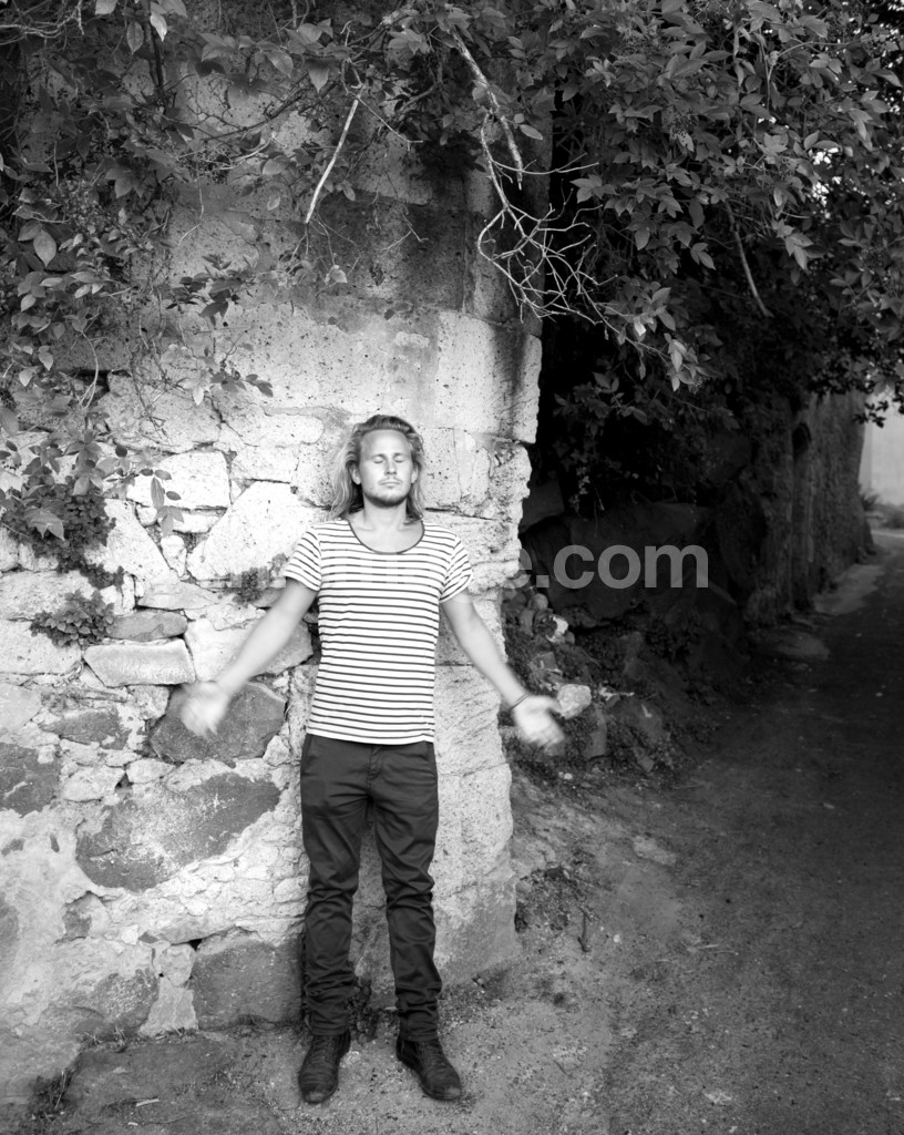 - The man at the stone wall in italy.
