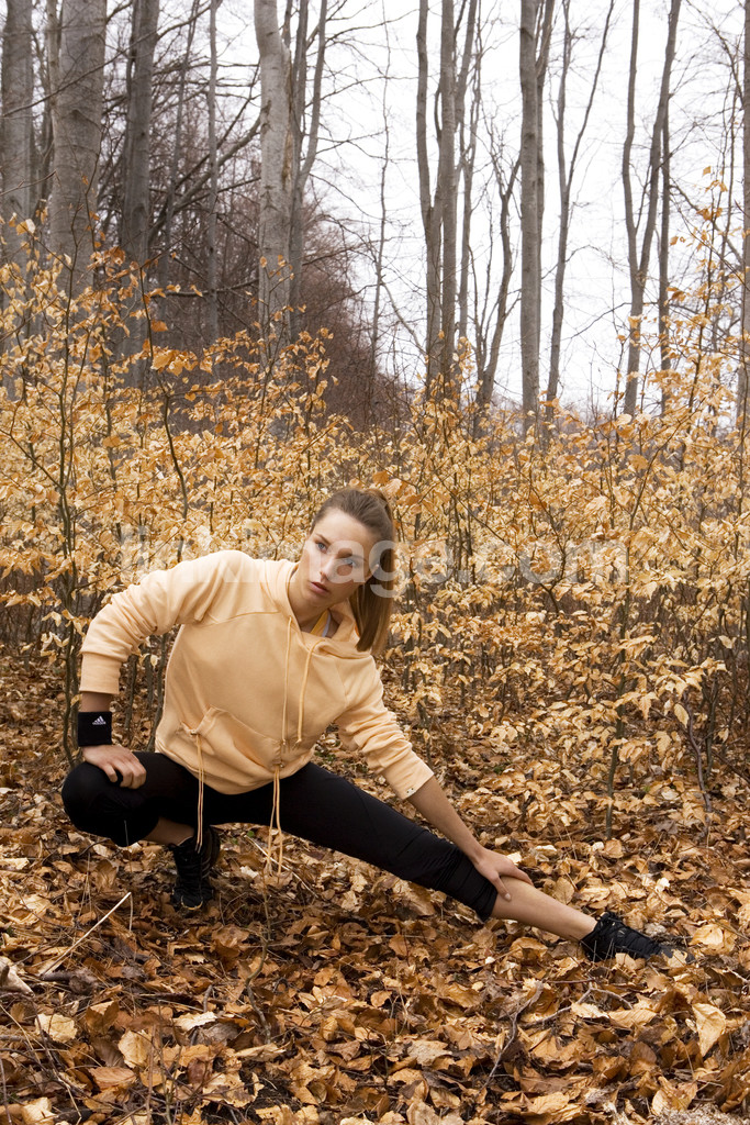 - sports, fall, leaf, brown, tree, train, run, stretch, fashion, model, female, sun, foliage, hands, stretch, shoes, bone
