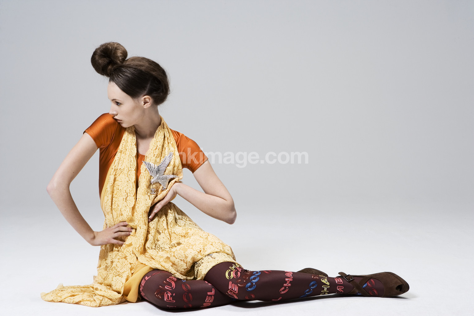 - sit, profile, hair, hairstyle, orange, tights, bird, brooch, shawl