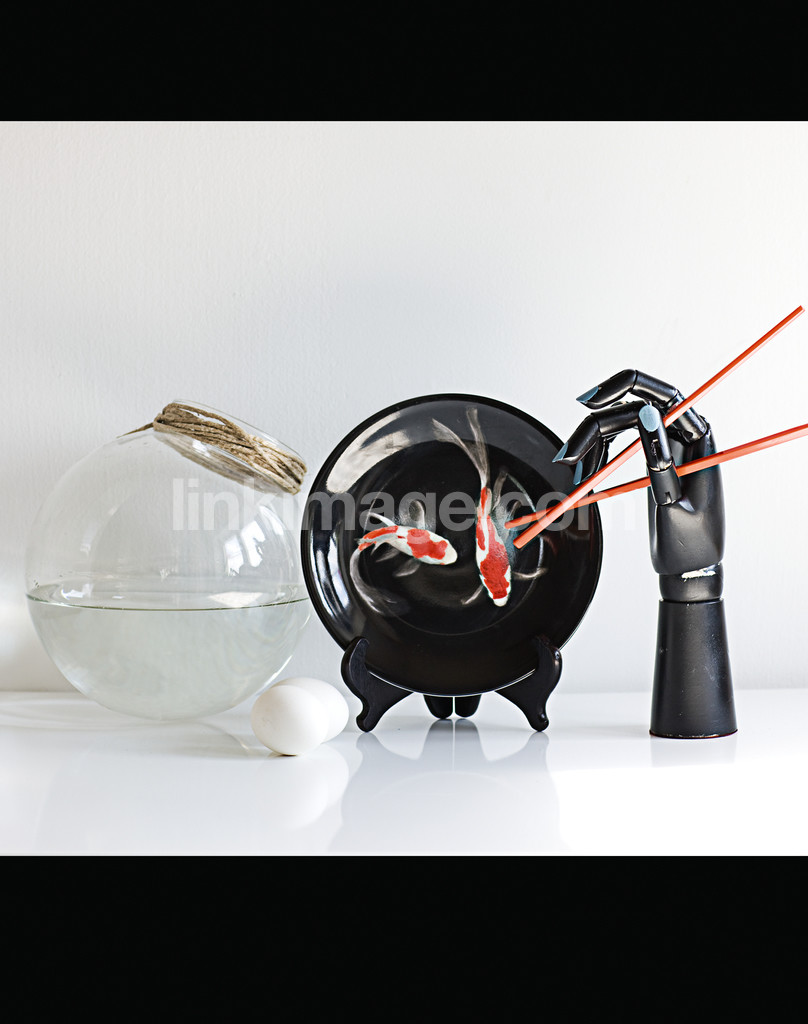 goldfish, fish, bowl, aquarium, plate, barrel, hand, eggs, chopsticks, eat, meal