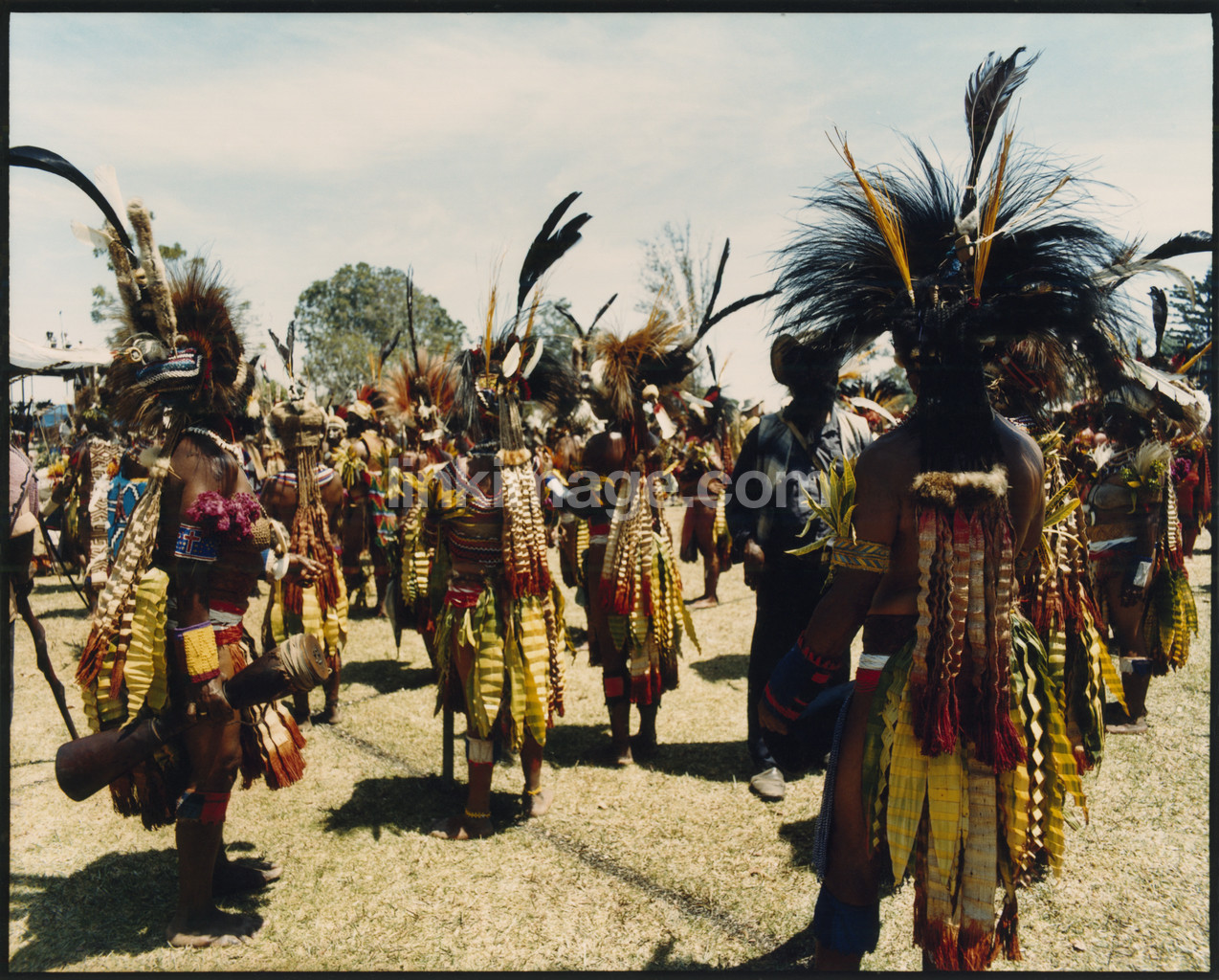 crowd, culture, body painting, feathers, headdress, hairstyle, hair, meadow, field, people, colors, colorful
