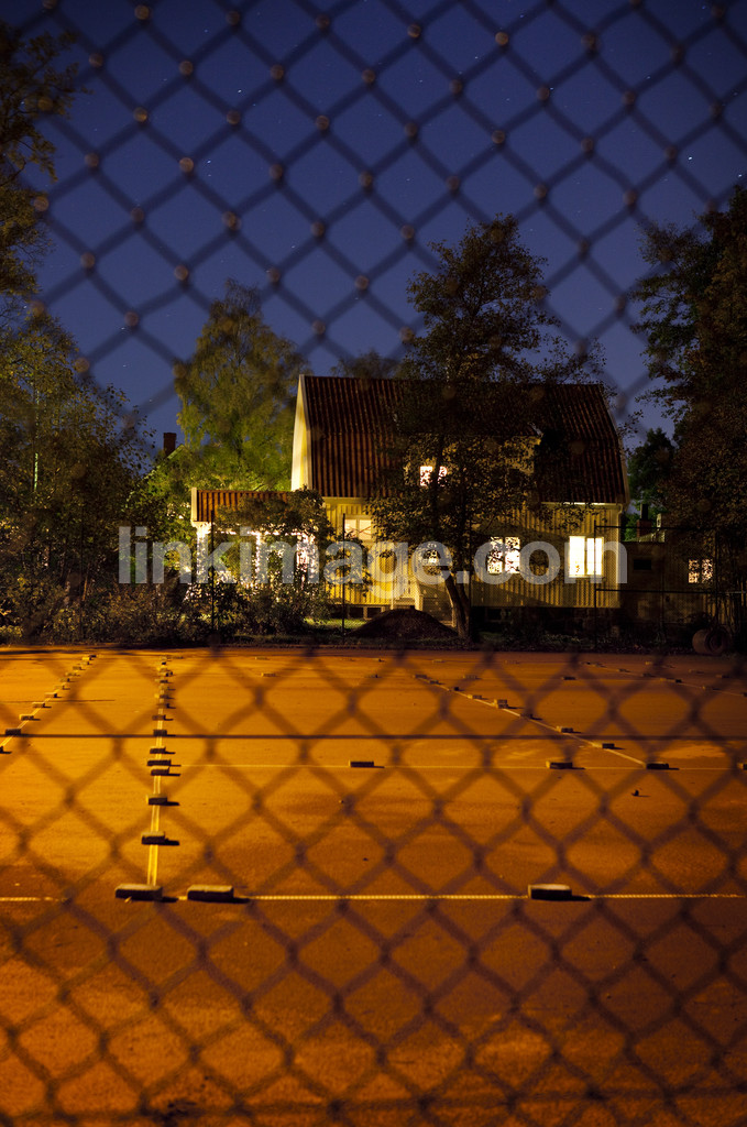 - house, villa, tennis court, tennis, grid, fence, night, evening, protection, threat, dark