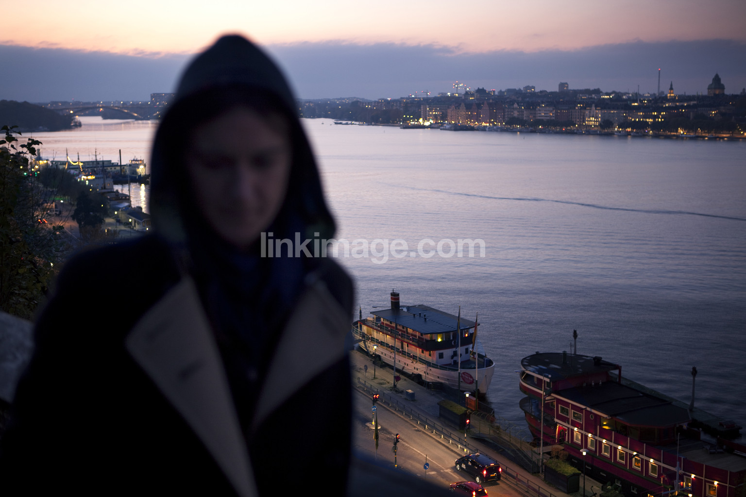 views, view, berth, port, night, evening, light, dark, female, alone, boats, södermalm