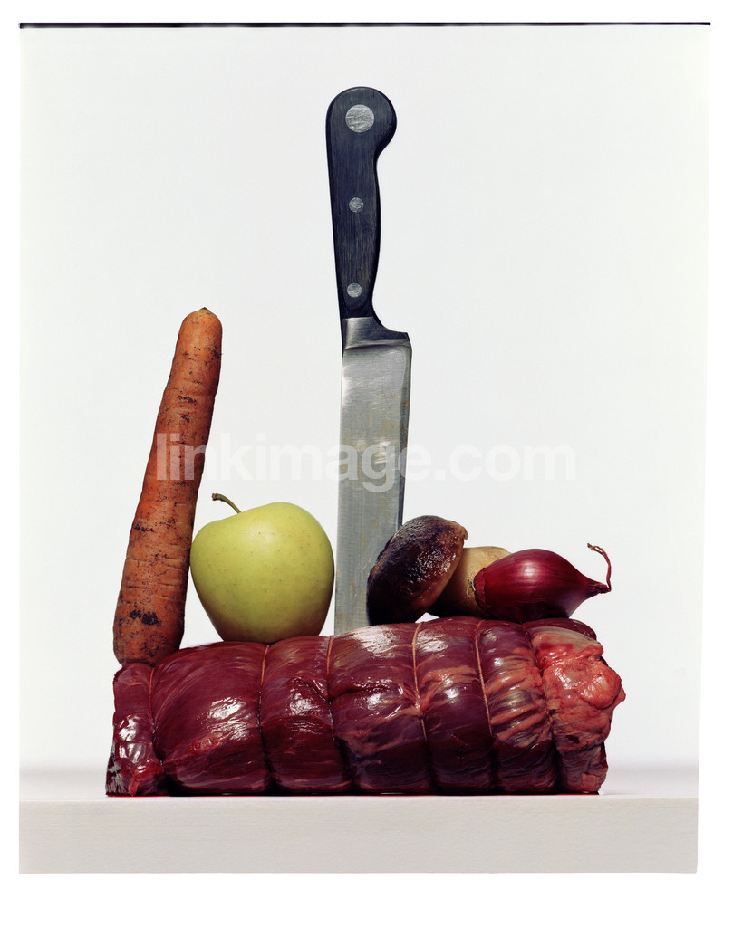 - food, still life, meat, ingredients, carrot, apple, knife, onions, mushrooms, group, cooking, steak