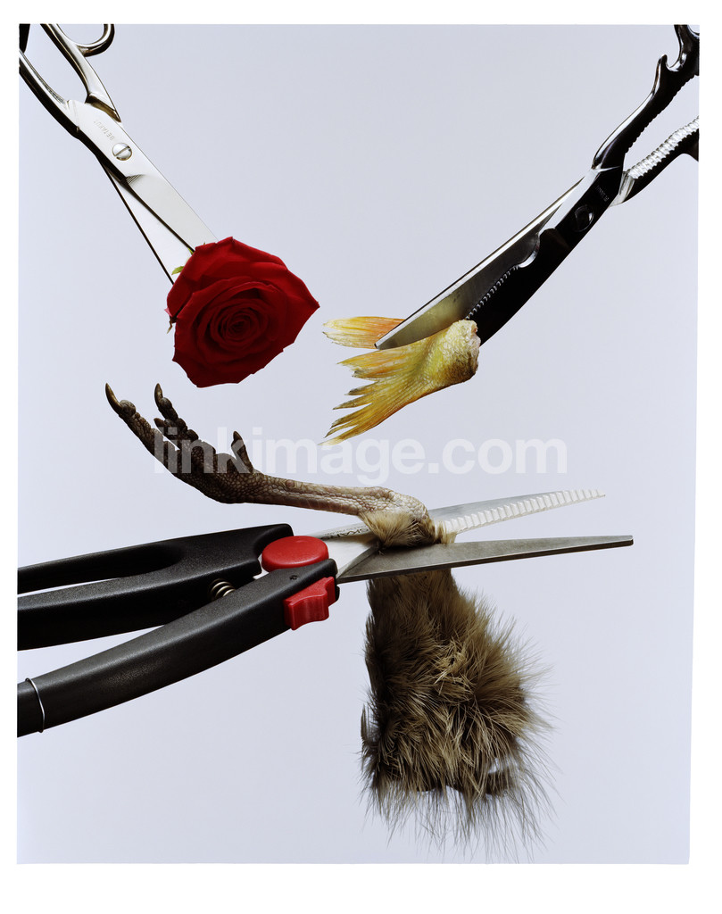 scissors, food, flowers, cutting, cut, bird, chicken, fish, fin, foot, drumstick, flower, rose, cooking