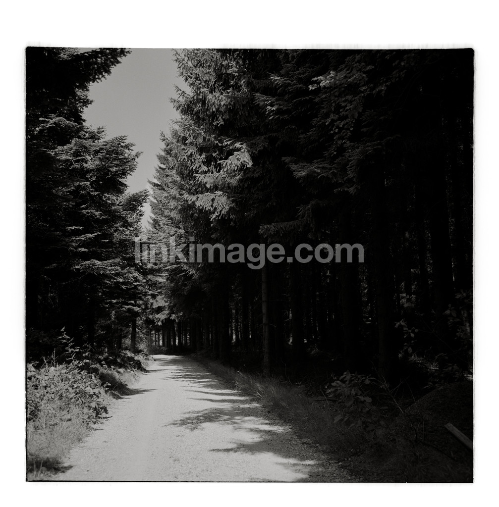 - forest, spruce, dark, road, gravel road, light, sky, nature, direction, forest road