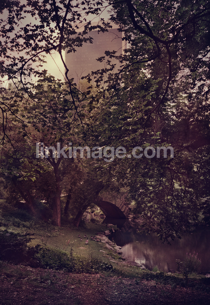 central, park, usa, geese, birds, tree, greens, summer, forest, water, bridge, dust, plants, nature, spot, branches, leaf