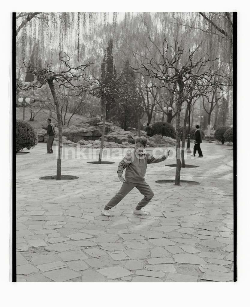 tai, chi, gymnastics, female, older, old, unknown, alone, movement, training, park, tree, dawn, culture, tradition