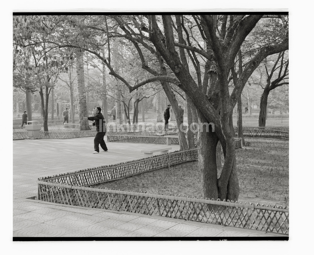 park, training, tai, chi, movement, alone, male, tree, fence, direction, popular movement, kinase