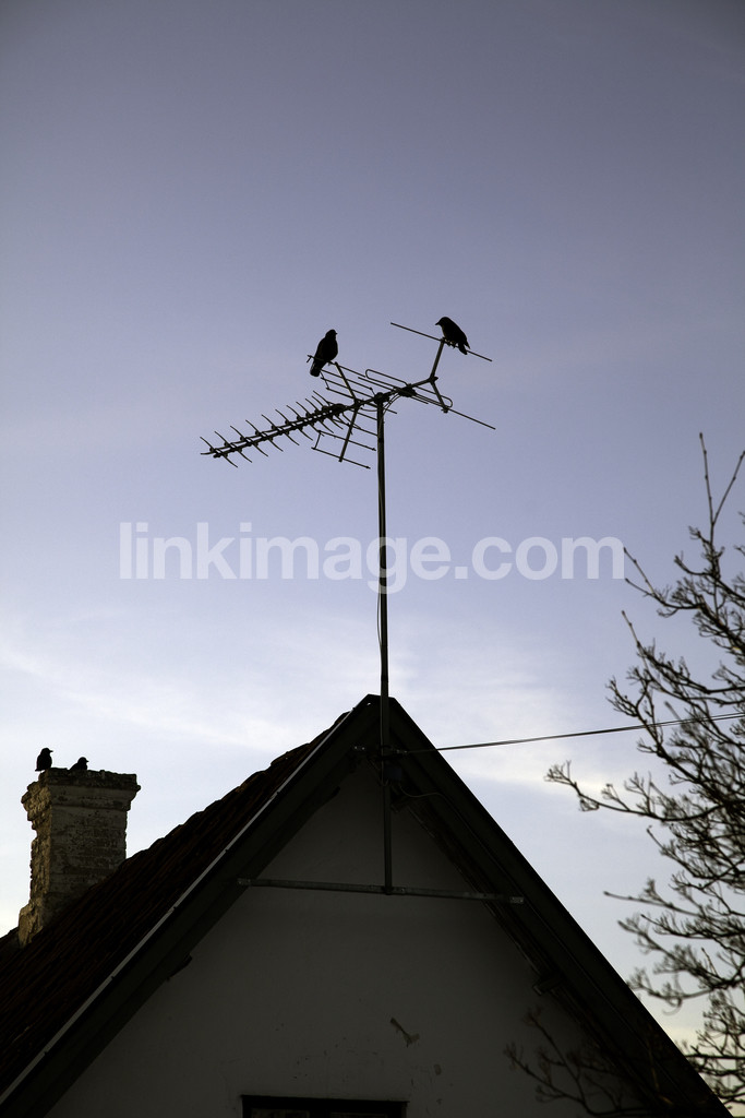 - birds, jackdaws, marriage, love, two, couple, togetherness, tv, antenna, ceiling, stack, four, nesting, spring, family, symbol, rooftops, graphic