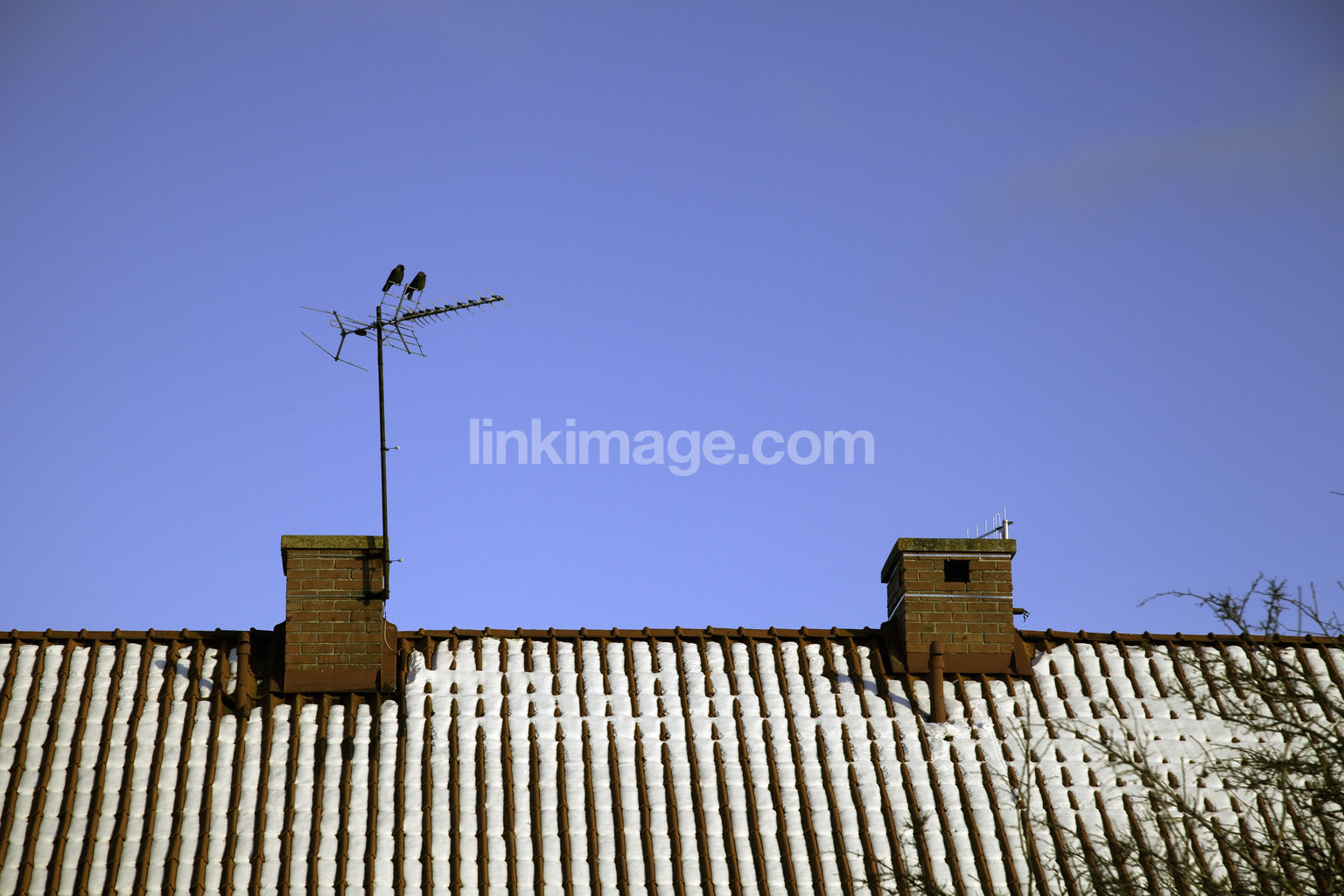 - birds, jackdaws, couple, marriage, antenna, ceiling, tile roof, spring, winter, snow, symbol, love, tv, togetherness, stack