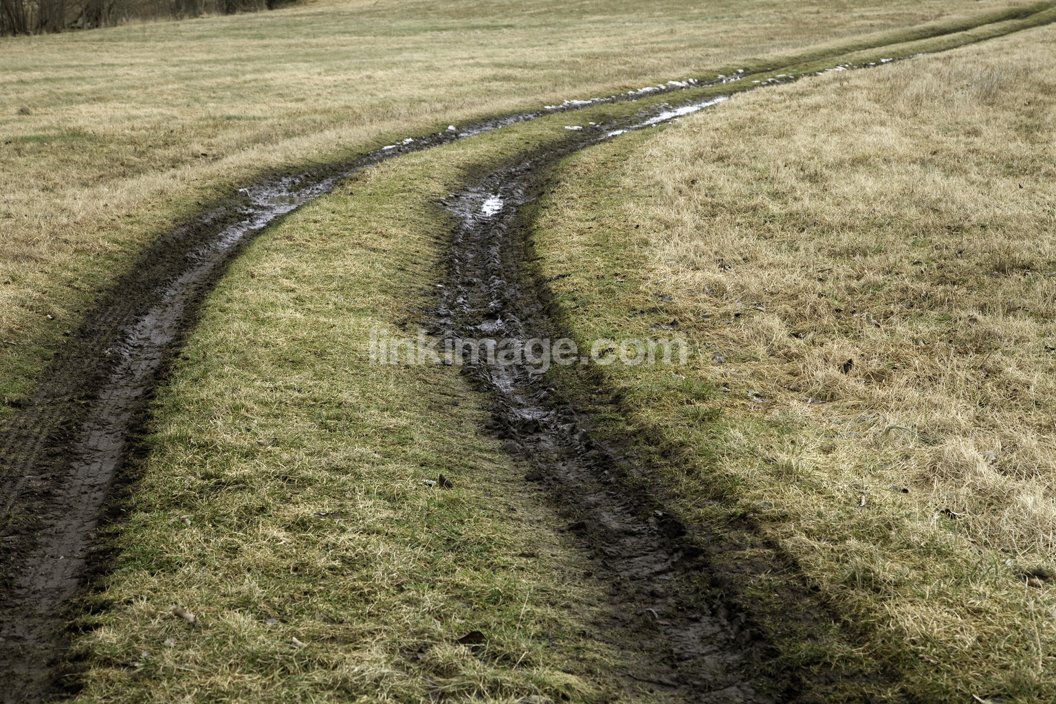 road, rut, track, car tracks, driving, clay, muddy, meadow, nature, spring, weather, grass, lines, line