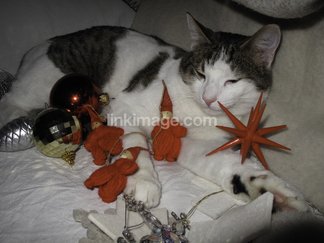 - july, feast, christmas celebration, christmas decorations, cat, brownie, gnomes, poinsettia, red, joy, happy, acid, tired