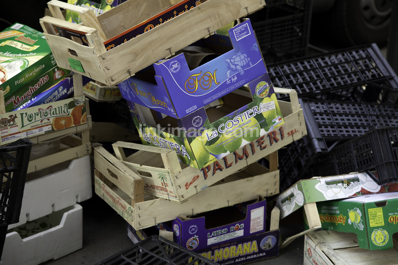 - debris, recycling, boxes, market, food, food market, garbage, advertising, packaging