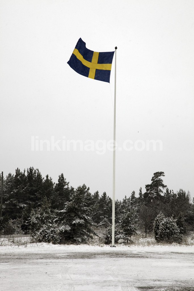 - swedish, flag, blue, yellow, winter, winter landscape, spot, snow, blown, wind, form, cross, flagpole, weather, feast, tradition, celebrate, design