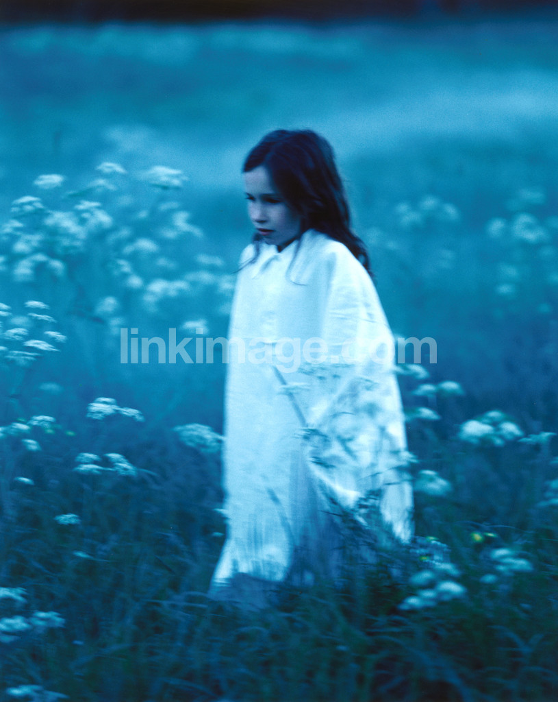 - blue, children, girl, garden, park, walk, fog, obscured, mysterious, meadow, summer, dg186, shirt, plants