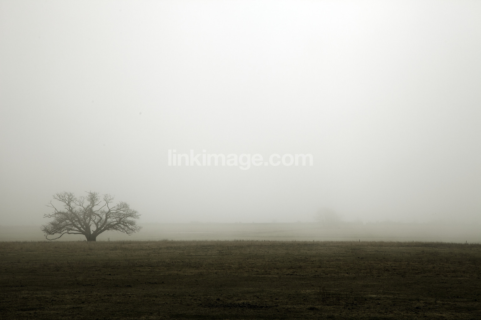 fårö, gotland, spot, view, tree, fog, weather, meadow, haze, spring, oak, horizon, light