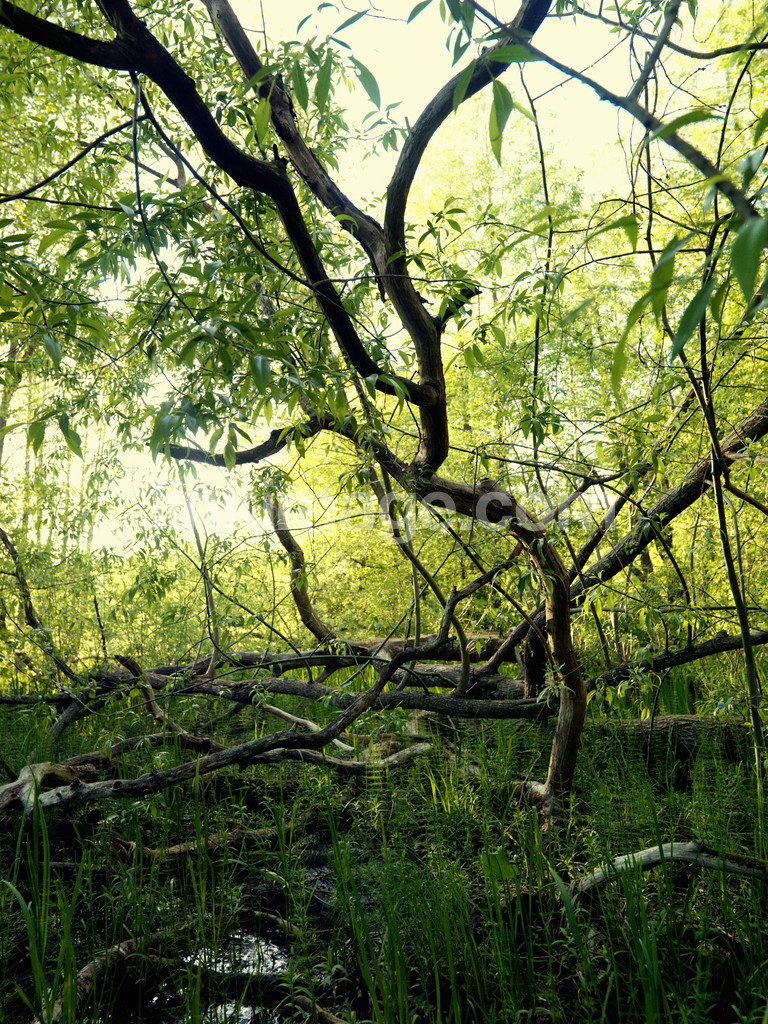 - spot, tree, forest, swamp, nature, jungle, branches, water, reed, environment, form, light, green, greens, greenery, summer