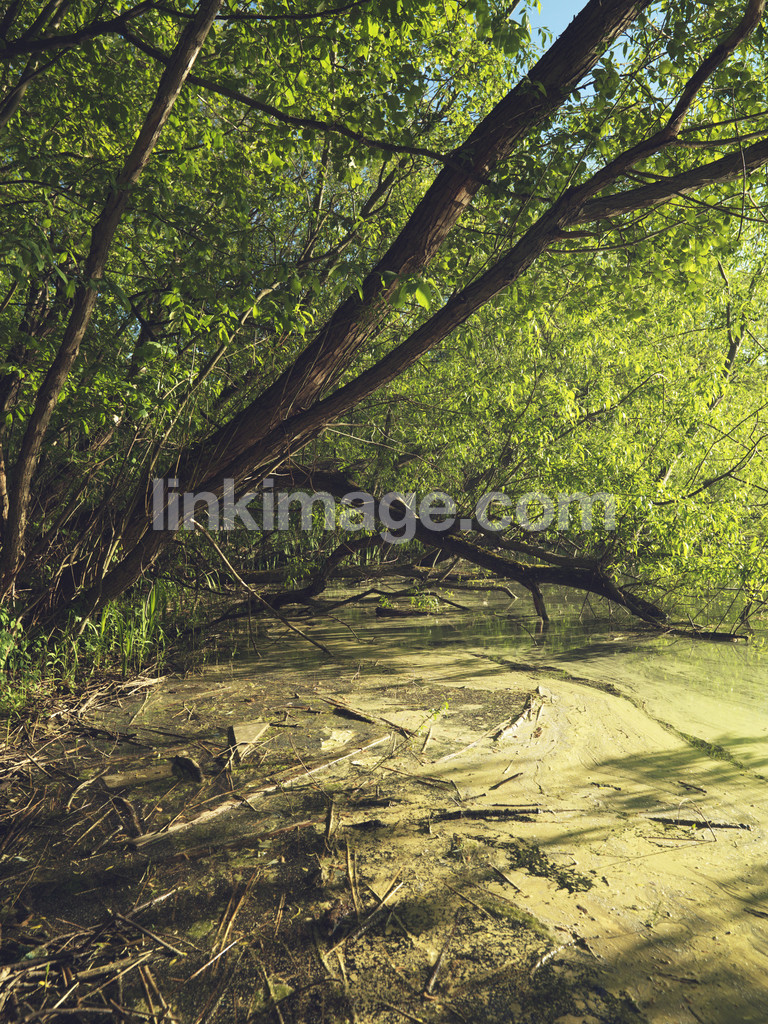 spot, tree, forest, nature, branches, water, bloom, shore, alg, algae, form, green, greenery, environment
