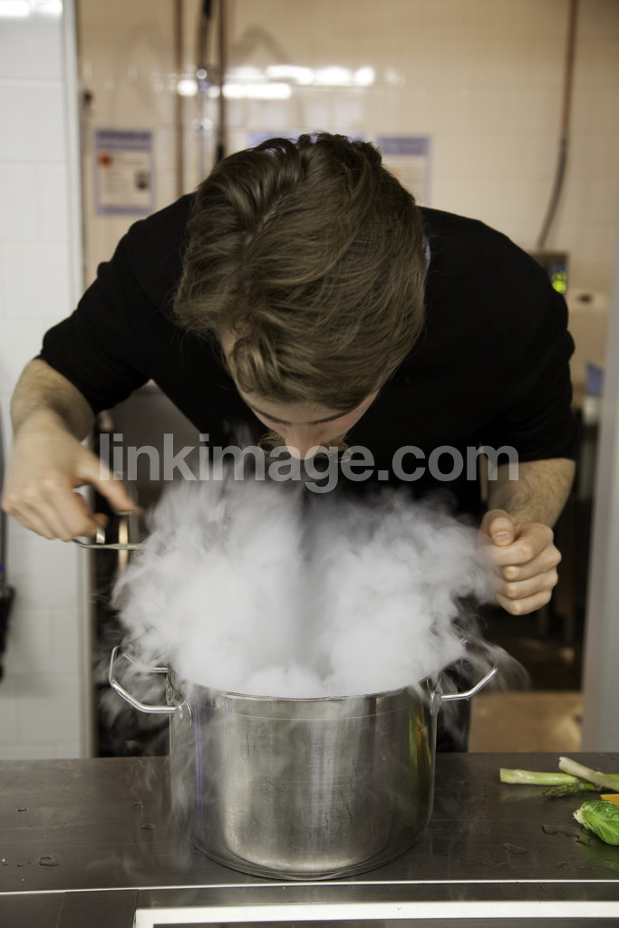food, cooking, smoke, smokes, mystery, male, cook, kitchen, sauce pan, funny, humor, mustache, steam