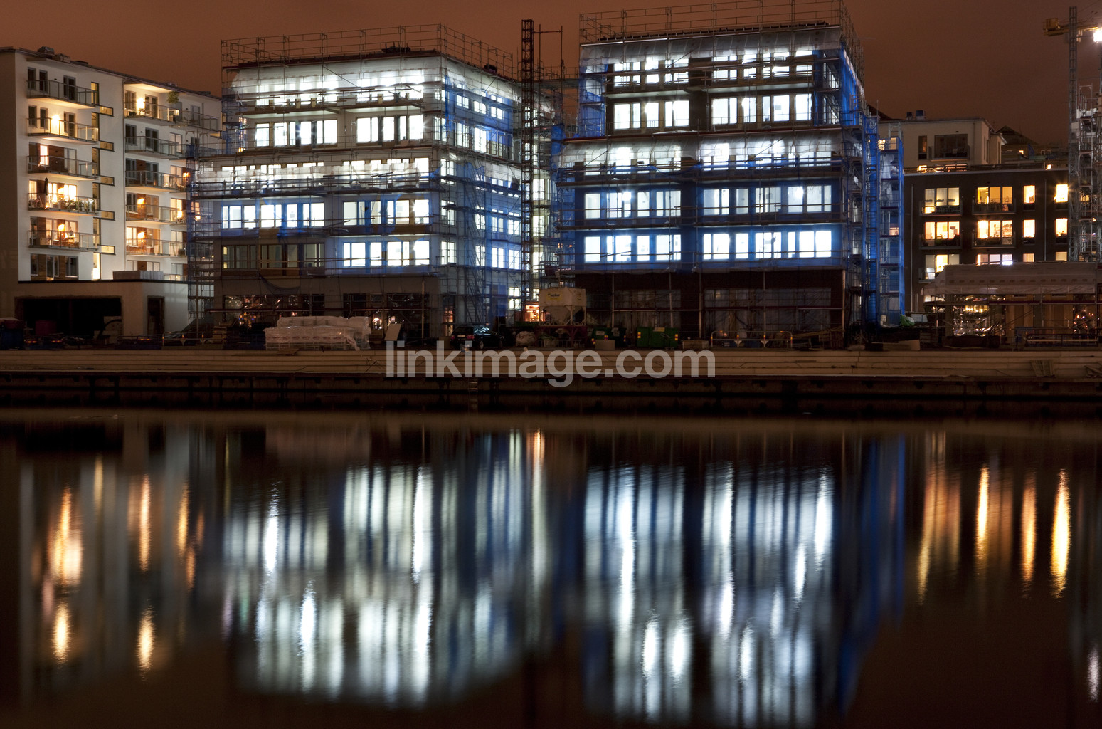 - stockholm, build, city, exterior, night, evening, light, lit, window, apartment, houses, based, new, water, port, reflection, sky, house, building, buildings
