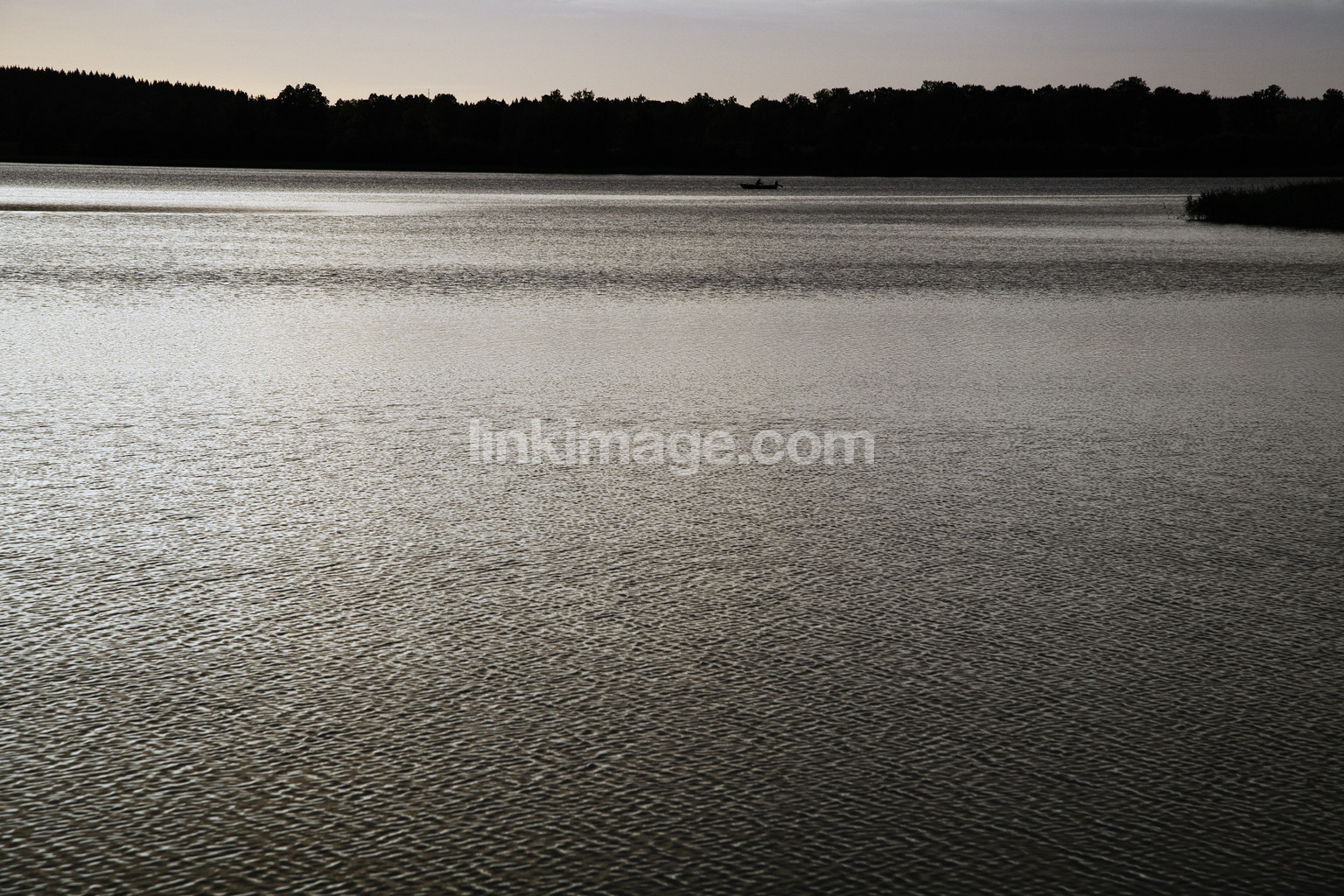 - fish, fishing, rowboat, lake, water, light, spot, dusk, evening light, horizon, ripple, forest edge