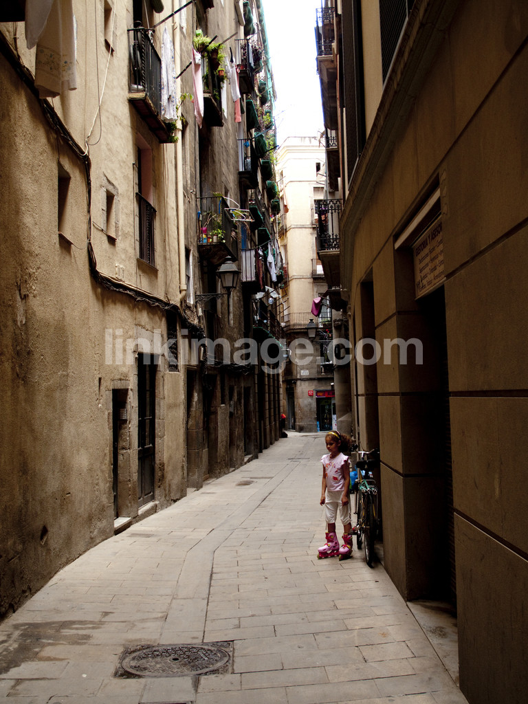 - alley, street, play, girl, children, city, roller skates, balconies