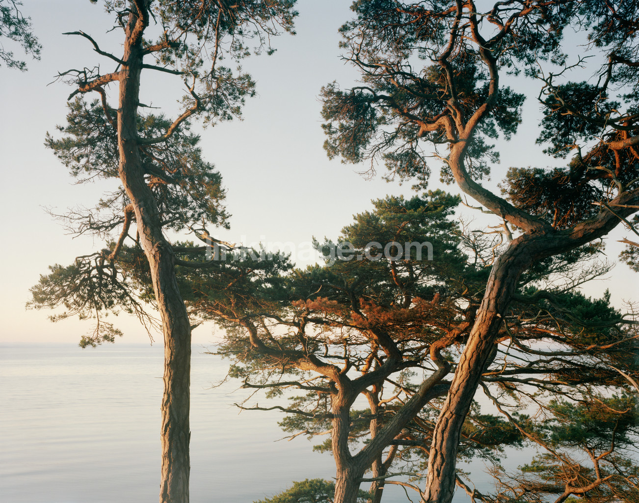 spot, pine, tree, shore, sea, water, gotland, summer, softwood, branches, sun, morning