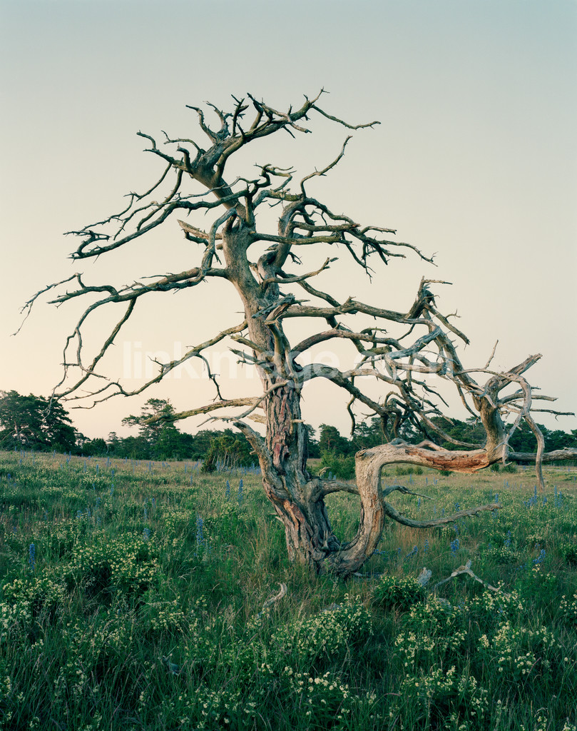spot, tree, pine, death, branches, gotland, meadow, grass, nature, morning, summer