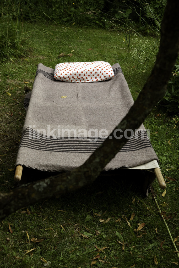 bed, stretcher, blanket, cushion, dot, dots, red, pattern, garden, rest, summer, lawn, stripe