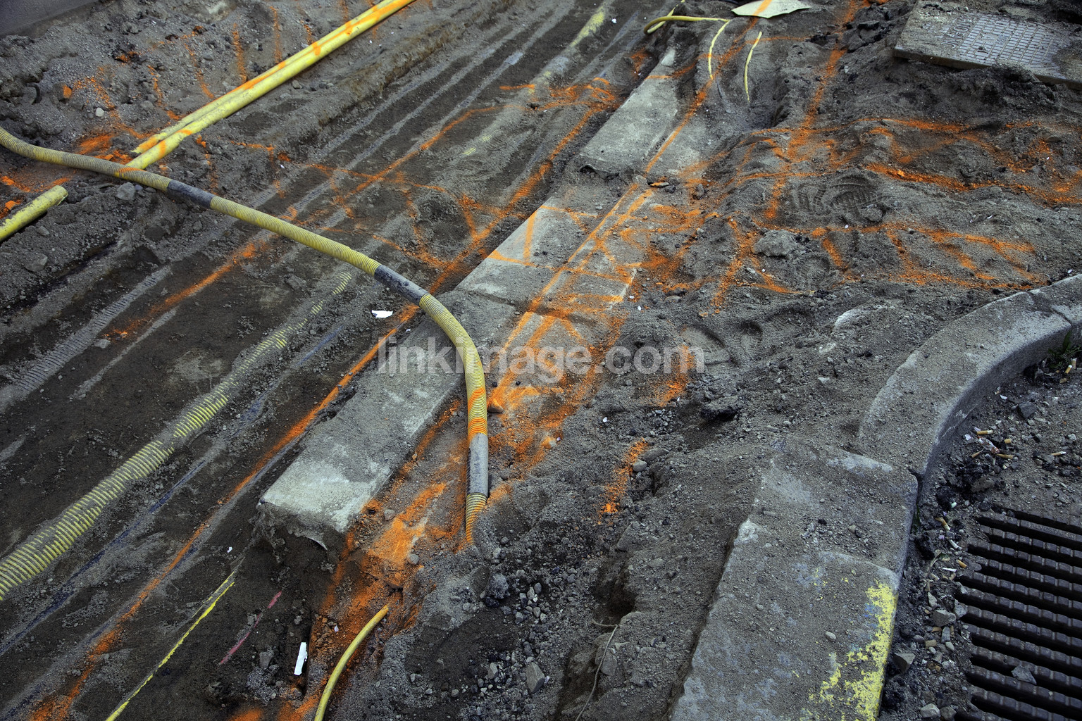 - street work, city, marker, color marking, pavement, colors, orange, lines, dig, asphalt