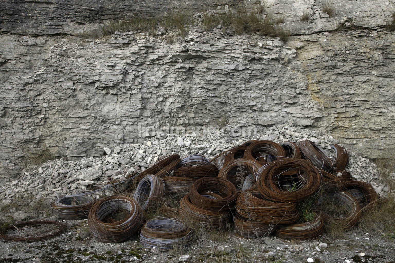 - scrap, wire, around, circle, rust, dumped, industrial, unknown, time, limestone quarry