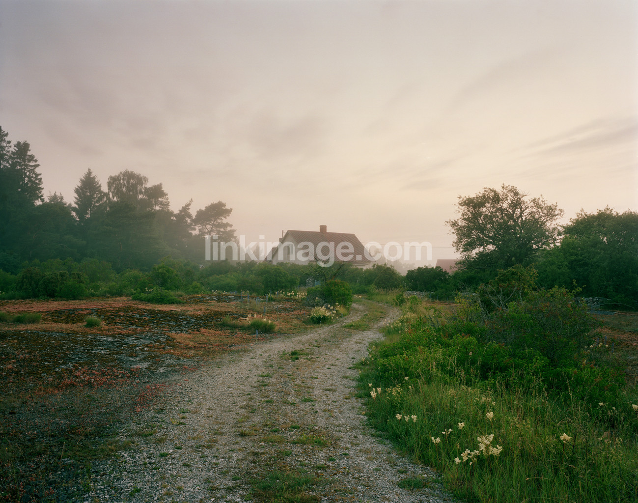 - spot, gotland, haze, fog, nature, grass, forest, morning, house, cottage, road, gravel road, summer, summer place