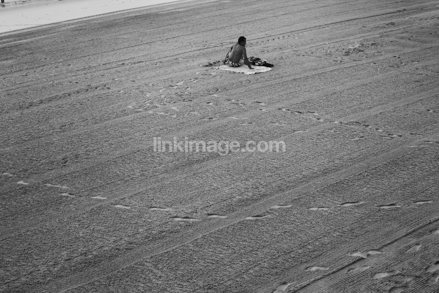 - shore, alone, male, sea, sunbathing, towel, rut, pattern, footprints, feet, rest, enjoyment, enjoying