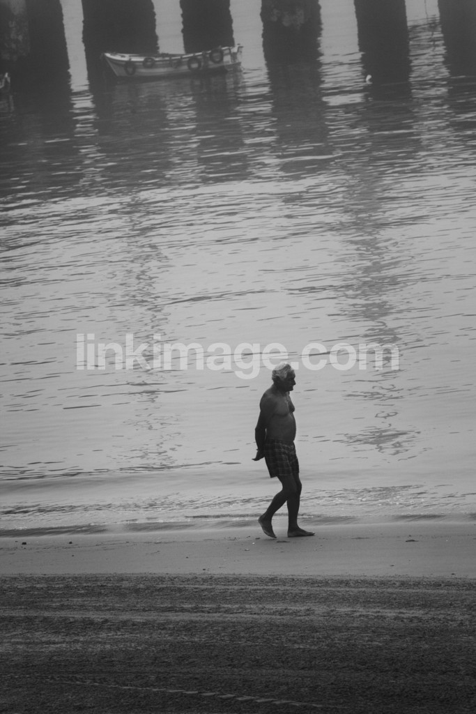 - male, shore, strawberry, shorts, fog, boat, concrete, column, sea, stillness, reflection, exercise