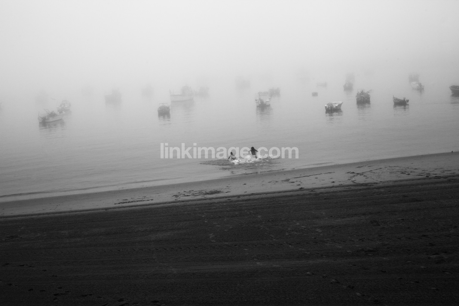 shore, adolescents, people, love, boats, fog, sea, water, quiet, stillness, bikini, shorts, play