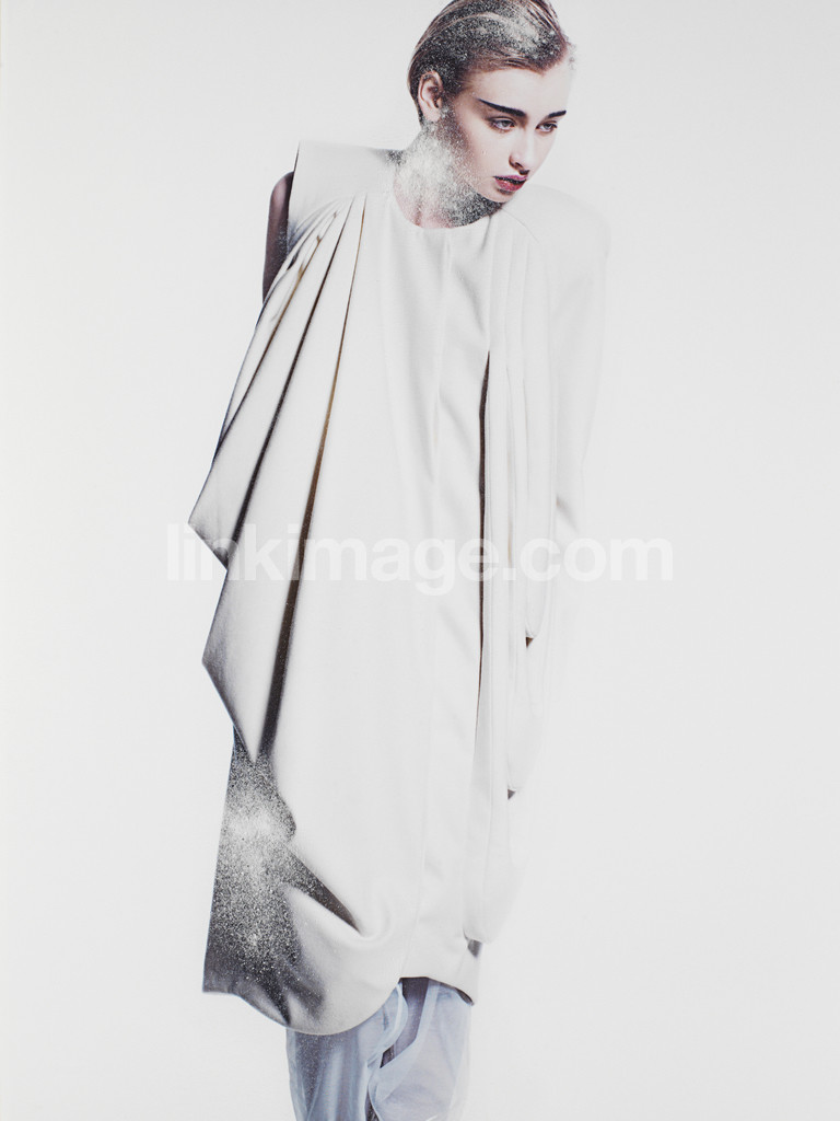 - female, portrait, jacket, white, beige, isolated, fashion, colors