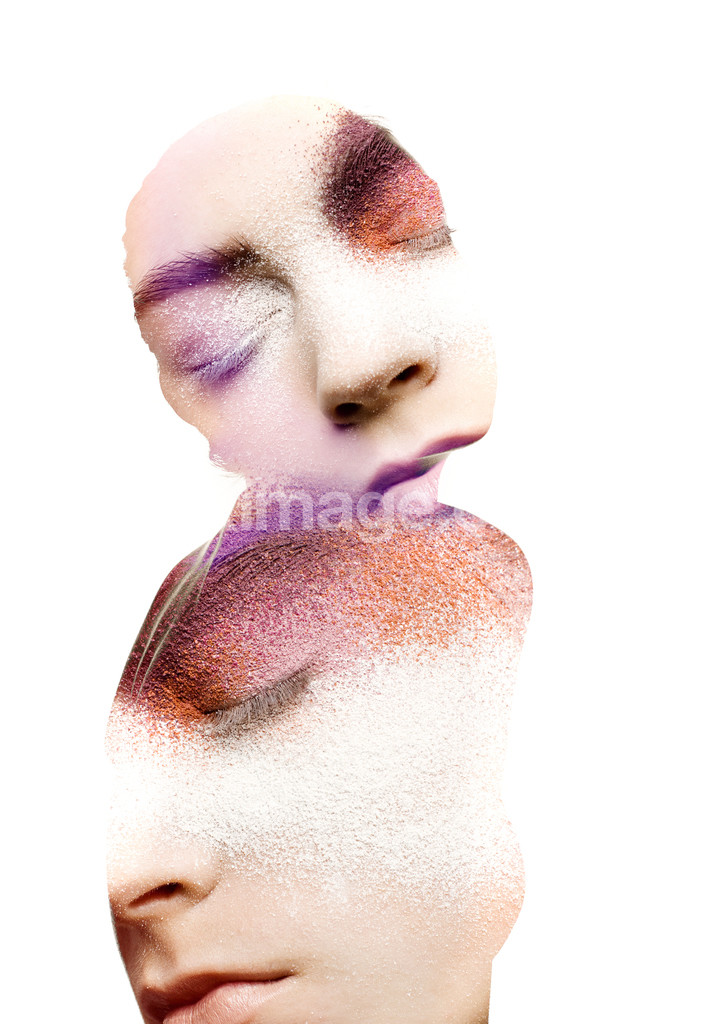 face, female, close your eyes, eyes, makeup, cosmetics, eyeshadow, pigment, glitter, double, portrait, resting